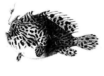 Keywords: Splitlure frogfish.jpg source http //www nefsc noaa gov/lineart/splitlure 20frogfish jpg probably Antennarius striatus Antennarius striatus PD-USGov