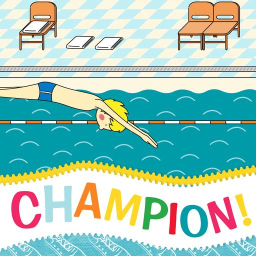 Keywords: sport greeting card pool swimming champion winning compete children kids exercise healthcare activity cartoon cute fun running active healthy lifestyle wellness physical vitality fitness training sportswear practice winner diving dive