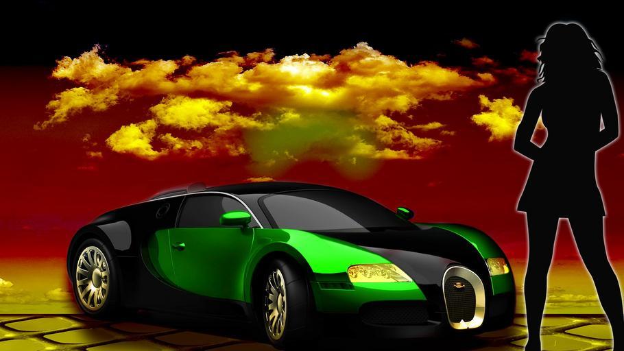 Keywords: sports car sky clouds road luxury auto woman silhuette sexy sunset