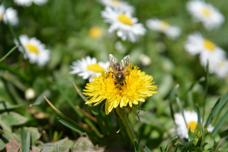 Keywords: spring flower bloom blossom bee pollen yellow meadow grass