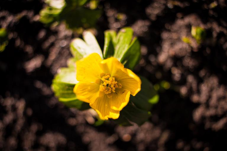 Keywords: spring flower yellow green brown soil blur plant flower spring color nature small denmark dirt ground