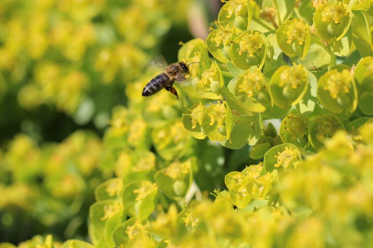 Keywords: spring nature blossom summer garden petal floral bloom colorful yellow flower bee