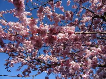 Keywords: spring pink cherry blossom japanese flowering cherry bloom blue sky flower blossoms spring awakening