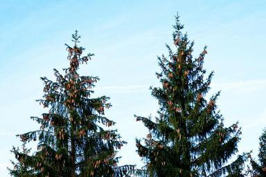 Keywords: spruce tree conifer tap pine cones crown nature sky branches aesthetic forest crowns treetop growth growth habit christmas tree fir