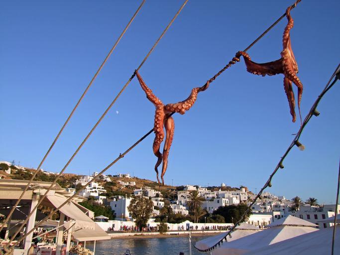 Keywords: squid octopus dry mykonos greece cyclades island holiday tourism