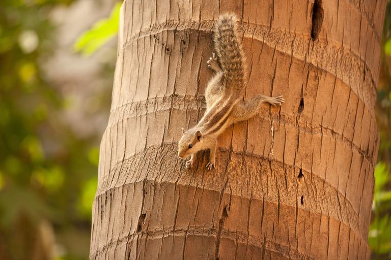 Keywords: squirrel climbing down coconut tree mammal rodent fur furry tail climb