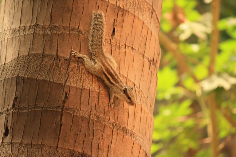 Keywords: squirrel climbing down moving fast tree brown wooden mammal wildlife animals furs furry rodent bushy tail chipmunks