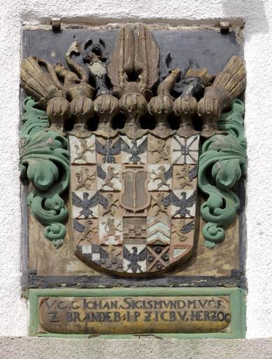 | Keywords: Srokowo Ratusz 004.JPG Srokowo Johann Sigismund Kurfürst und Markgraf von Brandenburg sowie Herzog und Mitregent von Preußen am Rathaus in Srokowo dt Drengfurth 1945-1950 Dryfort own Janericloebe 2010-08 Town hall in Srokowo Johann Sigismund Brandenburg Coats of arms of Brandenburg Coats of arms of the house of Hohenzollern Coats of arms of Prussia Coats of arms of Duchy of Crossen Coats of arms of Duchy of Krnov | ||||