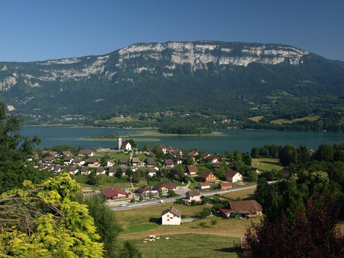 Keywords: St-Alban de Montbel.jpg en A large view of Saint-Alban de Montbel with Aiguebelette's lake and Mont Grêle mountain Own ClaudeMargot OTRS pending 45 33 7 6 N 5 46 45 E heading SE Saint-Alban-de-Montbel Lac d'Aiguebelette Mont Grêle