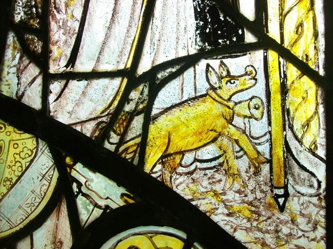 Keywords: St Antony's pig, Sandhurst, Kent.JPG en St Antony's pig detail of 15th century glass Sandhurst Kent 2015-05-24 own Poliphilo other versions cc-zero Uploaded with UploadWizard St Nicholas' Church Sandhurst Kent