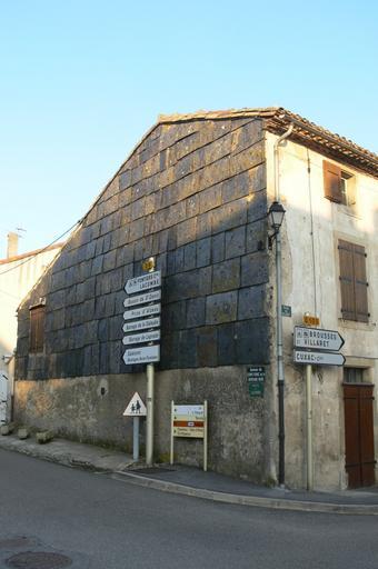 | Keywords: St-Denis-facade-ardoise02.jpg en Slate covered-house fronts in Saint-Denis Aude France It's a protection against horizontal rain fr Architecture typique de Sain-Denis Aude une façade est couverte d'ardoises comme protection contre la pluie horizontale own Ludoviccelle 2010 Cc-zero Saint-Denis Aude |