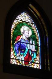 Keywords: St. Helena Immaculate Conception window apse E.JPG St Helena Nebraska The Gothic Revival church was built in 1897 With the 1919 rectory it is listed in the National Register of Historic Places own Ammodramus 2010-11-01 Cc-zero Pictures by Ammodramus Taken with Panasonic Lumix DMC-FZ20 Immaculate Conception church St Helena Nebraska windows Henry II Holy Roman Emperor on stained glass windows