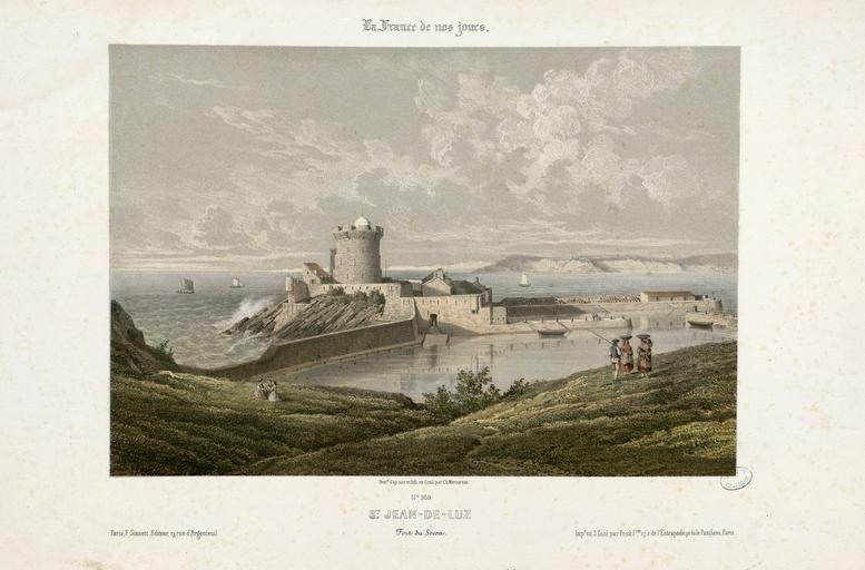 | Keywords: St. Jean-de-Luz, Fort du Socoa - Fonds Ancely - B315556101 A MERCEREAU 7 047.jpg Impression en 3 coul par Frick frères à Paris Fait partie d'un ensemble de recueils de lithographies de Mercereau composés de lithographies provenant de La France de nos jours vaste suite publiée par livraisons de 1853 à 1876 et comprenant 475 planches en deux tirages l'un à deux teintes noir et bistre l'autre en couleurs Les libraires ont réuni ces planches en albums de composition variable quant au nombre de planches et aux dessinateurs Asselineau Mercereau Maurice Deroy etc Un titre Les Pyrénées par Ch Mercereau; Bagnères-de-Luchon par Ch Mercereau était frappé sur le plat supérieur de la reliure de l'album ainsi que le nom du Libraire pour lequel il était réalisé La plupart des recueils de ces planches pyrénéennes portent le nom de Sajous libraire à Bagnères-de-Luchon Pl 1 à 18 numérotées de 370 à 386 Pl 374 pl 5 et 6 en double -- Pl 19 20 et 21 numérotées respectivement 407 415 et 418 Ces trois pl ont été dessinées et lithographiées par Asselineau -- Pl 22 23 et 24 numérotées 438 439 et 440 -- Pl 22 lith par Aubrun -- Pl 25 numérotée 441 -- Pl 26 à 40 numérotées de 327 à 341 -- Pl 41 à 46 numérotées de 363 à 368 -- Pl 47 numérotée 369 -- Pl 48 num 292 -- Pl 49 et 50 num 264 et 265 -- Pl 51 et 52 num 268 et 269 -- Pl 53 à 55 num de 293 à 295 -- Pl 56 num 300 -- Pl 57 à 59 num de 307 à 309 -- Pl 60 à 70 num de 316 à 326 -- Pl 71 num 63 dessin et lith d'Asselineau imprimerie Destouches -- Pl 72 et 73 num 87 et 88 dessin et lith d'Asselineau imprimerie Destouches -- Pl 74 num 124 signée Lebreton éditée chez Lalonde à Paris et imprimée chez Becquet frères à Paris -- Pl 75 num 161 dessin et litho d'Asselineau imprimerie Destouches --Pl 76 à 78 num de 207 à 209 -- Pl 79 à 81 num de 211 à 213 -- Pl 82 num 220 dessin et lith de Maurice imprimerie Destouches -- Pl 83 à 86 num de 226 à 229 -- Pl 87 et 88 num 234 et 235 -- Pl 89 à 91 num de 273 à 275 -- Pl 92 et 93 num 290 et 291 Pièces jointes 6 pl sépia dont certaines sont des doubles du recueil de Mercereau Les cinq premières planches sont numérotées respectivement 318 321 324 331 386 La dernière planche n'est pas extraite de La France de nos jours mais de L'Espagne pittoresque et monumentale Ces six planches sont signées Mercereau éditées chez Sinnet et imprimées chez Frick frères Ancely René 1876 - 1966 Possesseur fre public domain domaine public B315556101_A_MERCEREAU_7_047 jpg image/jpeg 1 f de pl lithogr ; 26 5 cm oblong Frick frères Imprimeur Sinnet F Éditeur http //numerique bibliotheque toulouse fr/collect/general/index/assoc//ark /74899/B315556101_A_MERCEREAU_7_047 dir/B315556101_A_MERCEREAU_7_047 jpg Bibliothèque municipale de Toulouse A-MERCEREAU 7-47 Creator Charles Mercereau http //catalogues toulouse fr/web2/tramp2 exe/do_keyword_search/log_in setting_key BMT1 servers 1home query p001671 St Jean-de-Luz intérieur de l'Eglise St Jean-de-Luz le Château de l'Infante Biarritz Vue générale prise du Phare Château de Mauvesin près Bagnères-de-Bigorre Hautes Pyrénées Bagnères de Bigorre Hautes Pyrénées - Intérieur de l'Eglise des Carmes en couleurs Bagnères de Bigorre Hautes Pyrénées - Intérieur de l'Eglise des Carmes Bagnères-de-Bigorre - Eglise et couvent des Carmes Bagnères-de-Bigorre Hautes-Pyrénées - Tour des Jacobins Cascade et Pont de Magenta Vallée de l'Esponne Hautes Pyrénées Cascade de Trémes-Aïgues Vallée de Grip Hautes Pyrénées St Sauveur Hautes Pyrénées - Le Pont Napoléon Bayonne - Eglise St André Arreau et la Vallée d'Aure Hautes Pyrénées - Vue prise au dessus de la route du Col d'Aspin Auch - Vue prise sur les bords du Gers Auch - Vue de la Cathédrale Auch - Intérieur de la Cathédrale Bagnères-de-Bigorre - Vue Générale prise de la Fontaine ferrugineuse Eaux-Bonnes Basses-Pyrénées - L'établissement Thermal et la Chapelle Nantes - Vue de l'Eglise Ste Croix Le Croisic - Plage des Baigneurs et Etablissement de Bains Le Folgoët - Vue de l'Eglise Brèche de Roland prise de Gèdres Hautes Pyrénées Eglise des Templiers à Luz Chapelle du couvent de Pouëlahun i e Pouey Lahun - Vallée d'Azun Hautes Pyrénées Le Pont de Scia - Route de Luz à Gavarnie Hautes-Pyrénées Vue de l'établissement de la Raillière près Cauterets Hautes-Pyrénées Vue générale de Cauterets prise du Mamelon Vert Hautes-Pyrénées Vue du Fort de Lourdes Hautes-Pyrénées Vue d'Argelès-de-Bigorre Hautes-Pyrénées Vue de St Sauveur Hautes-Pyrénées Le Pas de l'Echelle Route de Gavarnie Hautes-Pyrénées Fond de la Vallée d'Argelès prise de la terrasse de St Savin Hautes-Pyrénées Place Grammont à Pau Basses-Pyrénées Vue générale des Eaux-Bonnes Basses-Pyrénées Barèges et la Vallée du Bastan Hautes-Pyrénées Chute supérieure du Pont d'Espagne Hautes-Pyrénées La grotte miraculeuse à Lourdes Hautes-Pyrénées Eglise de Bétharram et Pont de Lestelle Basses Pyrénées Cascade du Cerizet Près Cauterets Hautes-Pyrénées Pic du Midi d'Ossau 2885m Basses Pyrénées - Vue prise du 3e plateau de Bious-Artigues Toulouse - Cloître du Musée et Clocher des Augustins Pau - Vue prise de la terrasse du Château Pau - Vue du Château prise du Parc Toulouse - Cloître du Musée Galerie du Moyen-Age Toulouse - La maison de pierre fragment de la façade Toulouse - Intérieur de St Sernin Toulouse - Vue du Capitole Bordeaux Vue de la Porte du Caillau i e Cailhau Bordeaux Porte de la grosse Cloche Bordeaux Vue des Quinconces Bordeaux - Vue de la Tour et de l'Eglise de St Michel Toulouse - Vue du Pont de pierre prise du Quai de Brienne Toulouse - Abside de l'Eglise de St Sernin de l'an 1097 Toulouse - Choeur de la Cathédrale St Etienne Rouen - Hôtel de Bourgtheroulde Biarritz - Vue des Bains Napoléon et du Casino Biarritz - Vue des Bains du Port Vieux Biarritz - Vue de l'Entrée de la Ville à l'arrivée de Bayonne Le Lac Bleu Hautes