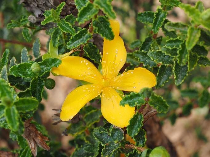 Keywords: st john's wort blossom bloom yellow leaves jagged wavy balearic islands st john's wort hypericum balearicum hypericum st john's wort plant hypericaceae bush