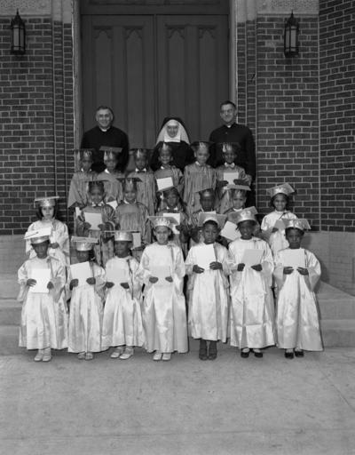 | Keywords: library of virginia libraryofvirginia richmond va richmondva nun catholic african-american africanamerican priest church religion adolph b. rice studio adolphbricestudio groups group photographs groupphotographs school children schoolchildren school photographs schoolphotographs school groups schoolgroups graduation photographs graduationphotographs graduations blackandwhite monochrome team sport sport group performance black and white Title: St. Joseph School graduation Creator: Adolph B. Rice Studio Date: June 11, 1955 Identifier: Rice Collection 648B Format: 1 negative, safety film, 4 x 5 in. Rights Info: No known restrictions on publication. Repository: Library of Virginia, Prints and Photographs, 800 E. Broad St., Richmond, VA, 23219, USA, digitool1.lva.lib.va.us:8881/R Title: St. Joseph School graduation Creator: Adolph B. Rice Studio Date: June 11, 1955 Identifier: Rice Collection 648B Format: 1 negative, safety film, 4 x 5 in. Rights Info: No known restrictions on publication. Repository: Library of Virginia, Prints and Photographs, 800 E. Broad St., Richmond, VA, 23219, USA, digitool1.lva.lib.va.us:8881/R |
