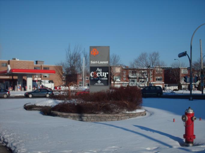 Keywords: St. Laurent Sign.jpg 45 5041851203784 -73 67649972438812 St Laurent sign photographed in Montreal Quebec Canada Own 2/27/07 Bull-Doser All Rights Released Saint-Laurent Montreal