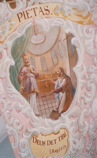 Keywords: St. Leonhard (Inchenhofen) 15.jpg St Leonhard Inchenhofen Fresko “ 7 Gaben des Heiligen Geistes “ Spiritus pietatis Geist der Frömmigkeit “ Motiv Hanna bittet Gott um einen männlichen Nachkommen Der Priester Eli verspricht ihr dass Gott ihr die Bitte erfĂĽllen wird 1 Sam 1 17 self-photographed 2004 Creator Ignaz Baldauf photographed by Hermetiker Licensed-PD-Art PD-old-100 cc-by-sa Hermetiker Frescos of St Leonhard Inchenhofen |