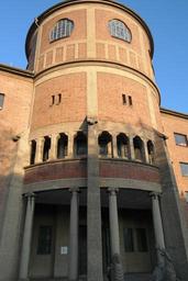 Keywords: st paul's church church ulm church portal are entrance portal portal protestant tower christian christianity faith religion parish church ulmer paul parish theodor fischer columnar brick building brick church brick work architecture enormous large bombastic powerful masonry input