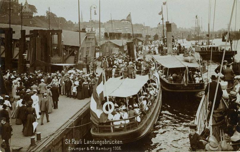 | Keywords: St-Pauli-Landungsbrücken-1906.jpg Postkarte St Pauli-Landungsbrücken Hamburg 1906 http //stadtteilgeschichten net/handle/2339/1186 stadtteilgeschichten net/ 1906 unknown Publisher Strumper Co Hamburg Landungsbrücken 1906 in Hamburg Port of Hamburg in the 1900s Harbour cruises in Hamburg Boats in Hamburg PD-old |