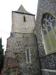 Keywords: 85/9/104 MAIN ROAD 25-AUG-54 ST PAUL'S CRAY CHURCH OF ST PAULINUS GV II* The nave, N chapel and western part of the chancel are C11. S aisle added late C12 or early C13, and nave N side preserves evidence for a former chapel of the early C12 and a former N aisle of c1200. W tower late C12 or early C13. Some C15 windows, and roof partially of this date. Top of tower is C17. Extensively restored in 1859-61, and the S chapel added in 1863. MATERIALS Flint rubble with stone and brick dressings. Shingled spire, tiled roofs. PLAN Nave with S aisle and evidence for a former N aisle, chancel with N and S chapels, W tower EXTERIOR Externally, the church is notable for the clearly visible evidence for its development. In the N nave wall is the remains of a small C11 window, cut by the former N arcade, with the head turned in brick. Blocked, pointed arches, in the N nave wall are evidence for the former two-bay N aisle, probably of c1200. C15 windows of two lights with square heads and two trefoiled lights are inset into the blocking of the arches, and there is a small lancet to the E of the arcade. An early C12 blocked round arch in the W wall of the N chapel is the remains of a former aisle or porticus chapel that was subsequently incorporated into the N aisle and then demolished with it. The NE quoin of the N chapel is made of Roman tile, and the E gable has irregular stone banding and brick along the gable edges. The NW corner of the nave has a brick quoin, probably late C17 and contemporary with those on the tower. The S aisle W window has late C13-style Geometric tracery, heavily or entirely renewed in the C19. The S windows, also mostly C19, are C15 in style with two lights in square heads. The N chancel chapel has a C19 plate tracery window of two lights with a quatrefoil in the head. The C19 S chancel chapel has Early English-style windows. The chancel E window is C16 in style and has a very depressed head with three uncusped lights. Two stage W tower with a shingled broach spire, the lower part c1200, the upper part rebuilt or restored in the late C17. C17 brick buttresses on the lower stage and C17 quoins on the upper stage, with a stone string course separating the stages. The W door has a moulded arch with dogtooth ornament on nook shafts with foliate capitals. Above the W door is a window of uncertain date with a C19 plate tracery insert, and there are two small, round openings in the lower part of the second stage. There are narrow lancets in the N and S walls of the lower stage, and late C17 round headed windows with brick dressings in the upper stage. INTERIOR The interior is notable for the three-bay S arcade, which is in two distinct parts, both with round piers and pointed arches. The eastern bay is late C12 and has a flattened roll on the soffit of the arch and lively capitals with acanthus leaves and carved heads. The western two bays have a chamfer on the inner arch moulding and moulded capitals to the pier and W respond. The S chapel was added in 1863, and the arch between the aisle and the S chapel and from the S chapel to the chancel have C19 Early English-style foliate capitals on polygonal responds; the Early English style arch into the N chapel is similar. The two bay former N arcade, still visible internally, was added c1200 and was similar to the western bays of the S arcade. It was set in the western part of the nave wall, presumably to accommodate the lost or covered over opening to the former N chapel. The head of a blocked C11 window is visible above the former arcade at the E end, and the narrow rood loft door opens internally above the E end of the S arcade. There is no chancel arch. The chancel S windows have hood moulds, and the remains of a triplet of lancets are visible in the E wall. The tower arch is also c1200; above it is a two-light C15 style opening. The nave roof was damaged in a fire in 1968, but retains some late-medieval timber. PRINCIPAL FIXTURES There is a C13 coffin lid with a foliated cross in the S chapel, and one late C19 monument. There are no other historic fittings of note remaining in the church. HISTORY The dedication to St Paulinus, a C7 bishop of Rochester, is rare. A church is mentioned in the Doomsday book of 1086, and the present structure was built in the C11. In its original form it appears to have comprised a nave and short chancel with a N porticus chapel flanking the chancel. In the early C12 a N nave chapel was added to the W end of the N chancel porticus, the arch into which is still visible externally. The eastern bay of the S aisle was added in the late C12 and a few years later c1200 the remaining two bays of the S aisle were added. A two bay N aisle which incorporated or continued the N nave chapel was added at this time, and the W tower is also late C12 or early C13. The chancel was extended eastwards in the C13. The chancel arch was removed at an unknown, presumably medieval date, and the aisle windows were redone in the late C15; probably also at this time the S aisle was widened. The top of the tower was remodelled and buttresses added in the C17, and perhaps also at this time the N aisle was demolished, the arches blocked, and the former aisle windows reset in the blocking. The church was restored in 1859-61, and the S chapel was added in 1863. There was further work after a fire in 1968, and a C13 stiff-leaf capital is said to have been found during the restoration. The church became redundant in the late 1970s and has been stripped of its furnishings. The former font, a polygonal example of the C15, is now in St Martin, Chelsfield (Bromley, GL), and the good C19 lectern with a pelican in her piety is in St Mary, St Mary Cray (Bromley, GL). 85/9/104 MAIN ROAD 25-AUG-54 ST PAUL'S CRAY CHURCH OF ST PAULINUS GV II* The nave, N chapel and western part of the chancel are C11. S aisle added late C12 or early C13, and nave N side preserves evidence for a former chapel of the early C12 and a former N aisle of c120