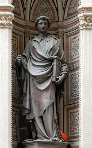 | Keywords: St Stephen Ghiberti Orsanmichele.jpg St Stephen Statue commissioned by the Arte della Lana guild of wool manufacturers Orsanmichele Florence Saint Étienne Statue commandée par l'Arte della Lana guilde de la laine Orsanmichele Florence Jastrow own picture 1428 Creator Lorenzo Ghiberti Santo Stefano Ghiberti replica and original niche Lorenzo Ghiberti 1428 bronze statues in Italy | ||||