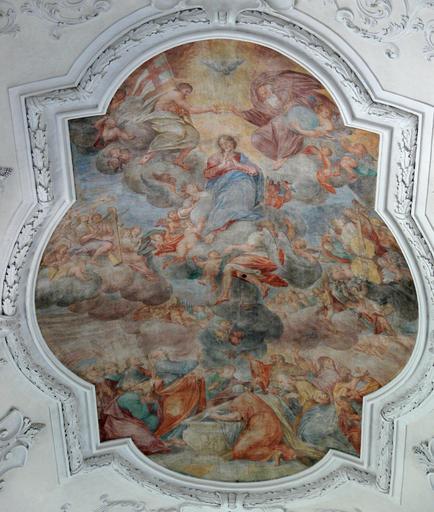 | Keywords: St Trudpert Kirche Decke Chor Himmelfahrt und Krönung Mariens.jpg Pfarrkirche St Peter und Paul und St Trudpert ehemalige Klosterkirche des Klosters St Trupdert Gemeinde Münstertal Landkreis Breisgau-Hochschwarzwald<br /> Fresko im Chor Mariä Himmelfahrt und Marienkrönung von Francesco Antonio Giorgioli 1710 own own photograph 2008-04 Creator Francesco Antonio Giorgioli Photo Andreas Praefcke Baroque frescos in St Trudpert Schwarzwald Frescos of the Assumption of Mary Frescos of Coronation of Mary 1710 paintings Francesco Antonio Giorgioli Photos by User AndreasPraefcke |