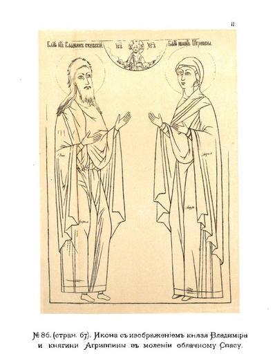| Keywords: St vladimir rjevskiy3.jpg ru П о ись с иконы около XVII в с изоб ажением князя Владими а и княгини Аг иппины в молении облачному Спасу с нимбами и с надписями «благове ный князь Владимi ъ Ржевскiй» «благове ная княгиня Ог ипена» А К Жизневский «Описание Тве ского музея А хеологический отдел» 1888 Ст 64-67 изоб 86 Author 1888 PD-art Icons of Tver |