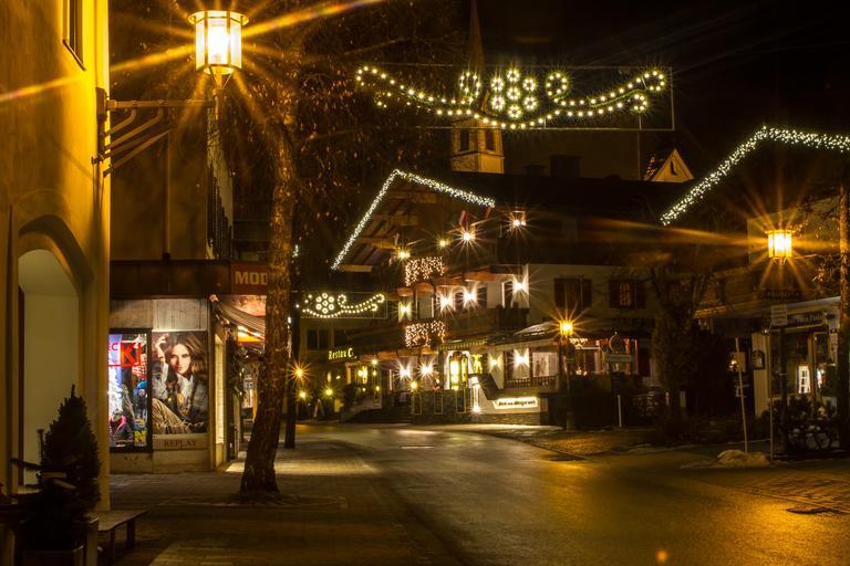 Keywords: staße alley staßenbeleuchtung shops hotel fieberbrunn illuminated at night