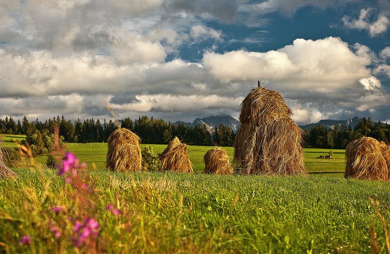 Keywords: stacks hay drying grass meadow green sharpness straw podhale poland landscape clouds tatry summer aura space agriculture scenery nature