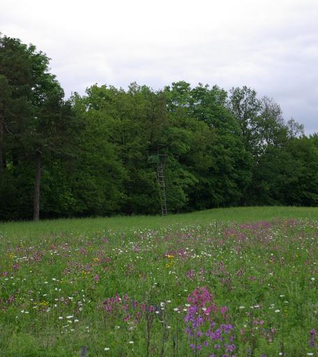 Keywords: Staffelberg Spitzberg Blumenwiese 001.JPG Blumenwiese und Hochsitz zwischen dem Staffelberg und Spitzberg own Janericloebe 2010-05 Staffelberg Flower meadows Shooting stands in Bavaria
