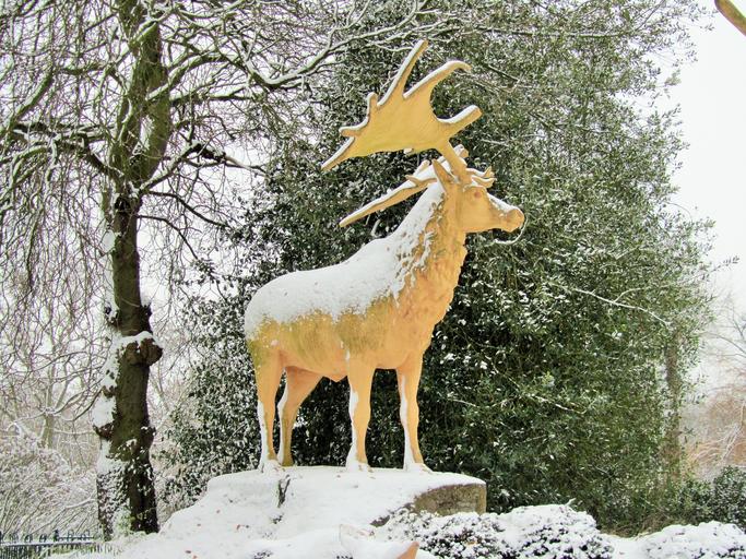 Keywords: stag snow winter statue deer reindeer crystal palace park festive season xmas animal