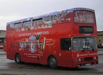 Keywords: Stagecoach North West bus 16335 (VLT 255) 1996 Volvo Olympian Alexander RL, Liverpool FC livery, Gillmoss depot, 11 July 2007.jpg Stagecoach North West bus 16335 reg VLT 255 a 1996 Volvo Olympian double-decker with Alexander RL bodywork pictured at Stagecoach Merseyside 's Gillmoss depot in Liverpool It's wearing a promotional Champions of Champions all-over livery celebrating Liverpool football club's record in European football It features images and facts from the club's 5 successful European Cup victories of 1977 1978 1981 1984 and 2005 It was one of two such buses the other one being Stagecoach Merseyside bus 34815 reg PX06 DVZ also pictured here out of shot to the left Pictured on 11 July 2007 the buses had been officially launched at the club's ground Anfield on 20 June 2007 Showcasing the livery 16335 operates on the X2 route between Liverpool Southport and Preston while 34815 operates across Merseyside Ironically given their fierce rivalry 16335 was delivered new to Stagecoach Manchester Greater Manchester Buses South as their coach seated fleet no 710 registered N335 NPN It's last allocation before this Liverpool livery was applied was as a route-branded bus for the long distance LakeLink service route 555/6 Lancaster to Keswick It's pictured here wearing the age masking cherished plate VLT 255 This used to belong to ex-London Transport Routemaster RM255 Having been transferred to Stagecoach United Counties in 1988 RM255 was re-registered as HVS 935 in 1992 before being withdrawn sold to a dealer in 1999 going on to see use as a promotional bus for Absinthe 16335 was eventually returned to its original registration painted back into Stagecoach livery and transferred to Barrow-in-Furness depot Crop of File Stagecoach Merseyside LFC buses jpg 2007-07-11 Uploaded to Wikipedia by Karls07 Transferred to Commons by User Divy Cropped by User Ultra7 Released into the public domain by the author other versions Stagecoach Merseyside LFC buses jpg Stagecoach Merseyside Alexander Dart SLF 34815 jpg en wikipedia Karls07 Stagecoach in Lancashire 16335 Buses in Liverpool N335 NPN Buses in the United Kingdom photographed in June 2007 Public transport buses in the United Kingdom Alexander RL on Volvo Olympian buses in the United Kingdom N335 NPN N prefix registered buses in the United Kingdom N335 NPN Buses with ex-Routemaster registrations VLT 255 Buses in the United Kingdom commemorating non-transport organisations or events Liverpool FC Liverpool FC Champions of Champions Buses Association football team buses in the United Kingdom Bus depots in Liverpool |