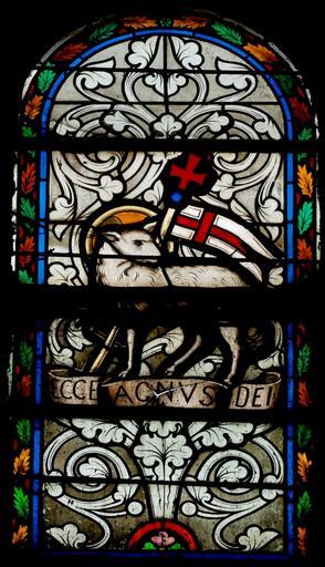 | Keywords: Stained glass Agnus Dei Orcival.jpg Agnus Dei Stained glass window from the choir of the basilica of Orcival Auvergne France Agnus Dei Vitrail du chœur de la basilique d'Orcival Auvergne France own own picture Jastrow 2006 Public Domain Jesus as the Lamb of God on stained glass windows Interior of basilica of Notre-Dame d'Orcival |