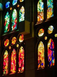 Keywords: stained glass window cathedral sagrada família barcelona catalonia architecture church monuments light temple religion window cristalera