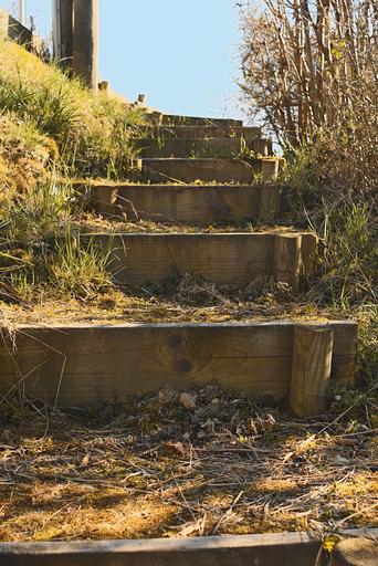 Keywords: staircase climb wood earth blue sky