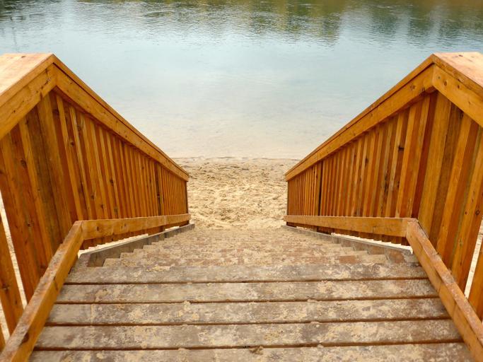 Keywords: staircase steps access stairway stairs construction climb structure timber down landscape outdoor water river