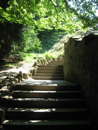 Keywords: stairs forest lichtspiel emergence gradually staircase stone sun