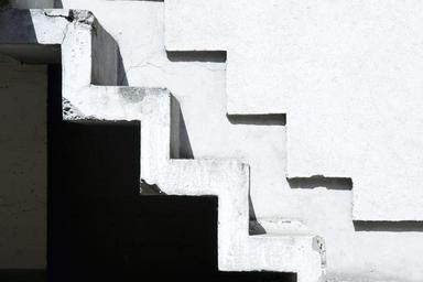 Keywords: stairs home black and white contrast white plaster building architecture graphically shadow light wall stair step rise emergence gradually white houses staircase concrete