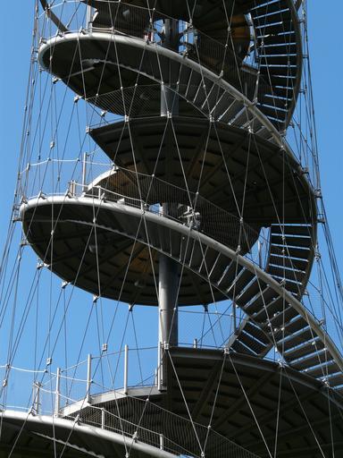 Keywords: stairs spiral staircase metal gradually ropes steel cables modern view observation tower tower stuttgart killesberg park green area recreation complex building architecture scaffold upgrade high