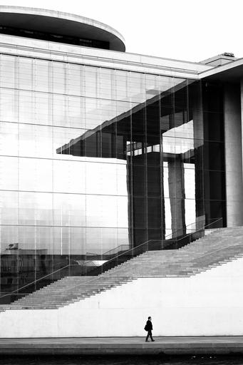 Keywords: stairway front facade exterior modern contemporary architecture entrance stairs house building glass wall reflection structure construction massive person