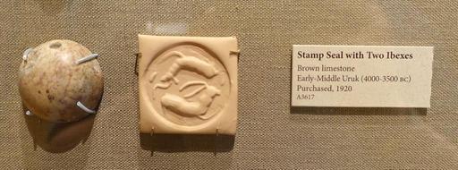 View Original: | Stamp seal with Two Ibexes, Early-Middle Uruk, 4000-3500 BC, brown limestone - Oriental Institute Museum, University of Chicago - DSC07199.JPG (4001x1481) | |||