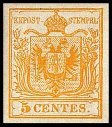 | Keywords: StampLombardiaVenetia1850Michel1.jpg ru Пе вая почтовая ма ка Ломба до-Венецианского ко олевства de Neudruck Mi 1 ND personal collection Postal administration of Lombardy-Venetia 1866-1894 Reprint not original issue Could be between 1866 and 1894 7 official reprints in this period cc-zero 1850 stamps of Lombardy-Venetia Definitive stamps of Italy Coats of arms on stamps | ||||