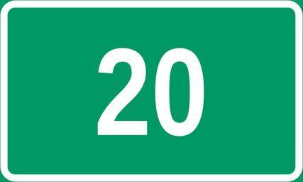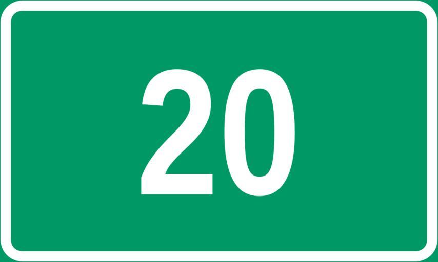 Keywords: Stamvei 20.svg en Diagram of norwegian trunk road sign Own work by uploader based on File Tabliczka E svg BjørnN 2009-02-19 Diagrams of route signs of Norway 020 20 number