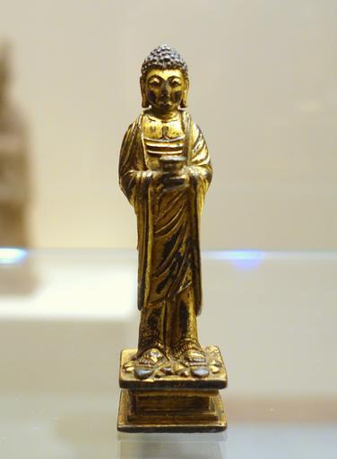 Keywords: Standing Buddha, China, Sui or early Tang dynasty, 6th-7th century AD, gilt bronze - Ethnological Museum, Berlin - DSC02125.JPG en Exhibit in the Ethnological Museum Berlin Germany Photography was permitted in the museum without restriction 2014-11-11 11 07 32 own Daderot other versions cc-zero Sculptures of China in the Ethnological Museum Berlin Uploaded with UploadWizard |