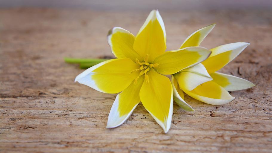 Keywords: star tulip small star tulip flower blossom bloom yellow-white spring flower wood close