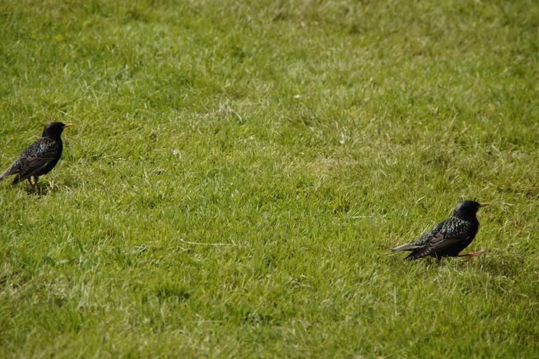 Keywords: stare birds meadow peck hop migratory birds foraging two