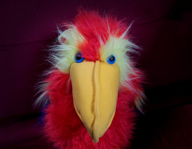 | Keywords: stare parrot puppet toy bird fluffy furry fur soft gaze intimidate intimidation eyes eyeball hypnotise hypnotize hypnosis challenge angry stubborn aggressive aggression red yellow macaw scarlet staring gazing colorful color colour multicolored cute cuddly pupil beak |
