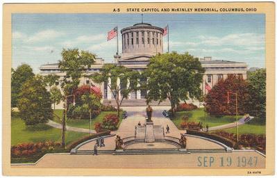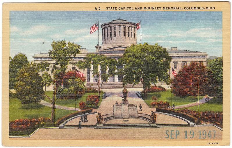 Keywords: columbus columbus, ohio columbusohio ohio postcard used state capitol statecapitol mckinley memorial mckinleymemorial memorials white border whiteborder 1947 1940s downtown w.e. ayres weayres c.t. art-colortone ctartcolortone curt teich co. curtteichco made in the u.s.a. madeintheusa ohio state capitol ohiostatecapitol ohio state house ohiostatehouse state house statehouse william mckinley memorial williammckinleymemorial photo border outdoor Description on card: State Capitol and McKinley Memorial, Columbus, Ohio No. in Series: A-5 Publisher: W.E. Ayres, 1049 Livingston Ave., Columbus, Ohio / Genuine Curteich-Chicago "C.T. Art-Colortone" post card, a tradename under Curt Teich Co., Chicago, Illinois Date on card: September 19, 1947 Used. Publisher Note: Curt Teich emigrated to Chicago in 1895. He had worked as a lithographer in Lobenstein, Germany. He founded the Curt Teich Company in 1898, concentrating on newspaper and magazine printing. He was an early publisher of postcards, but he didn't begin printing them himself until 1908. According to MetroPostcard.com, "As his competition dwindled, his sales expanded and his American factories would eventually turn out more postcards than any other in the United States. " The company was best known for their wide range of advertising and postcards of North America. By the 1920s, it was producing so many postcards with borders that they became recognized as a type dubbed "White Border Cards," creating an "era." Curt Teich started using offset presses in 1907, but it took a number of years before he had offset presses made to his satisfaction, and many more years for him to perfect the method. His innovations in this printing technique directly led to the production of what we now call "linens" by the early 1930s. The company aided the war effort during the second world war by also printing many military maps. Curt Teich eventually turned management of the company over to his son, but he remained active in company operations throughout its history. Curt Teich died in 1974 and the family business was sold to Regensteiner Publishers who continued to print postcards at the Chicago plant until 1978 when the rights to the company name and processes were sold to the Irish company, John Hinde Ltd. Their California subsidiary now prints postcards under the name John Hinde Curteich, Inc. Source: www.metropostcard.com/publisherst.html Description on card: State Capitol and McKinley Memorial, Columbus, Ohio No. in Series: A-5 Publisher: W.E. Ayres, 1049 Livingston Ave., Columbus, Ohio / Genuine Curteich-Chicago "C.T. Art-Colortone" post card, a tradename under Curt Teich Co., Chicago, Illinois Date on card: September 19, 1947 Used. Publisher Note: Curt Teich emigrated to Chicago in 1895. He had worked as a lithographer in Lobenstein, Germany. He founded the Curt Teich Company in 1898, concentrating on newspaper and magazine printing. He was an early publisher of postcards, but he didn't begin printing them himself until 1908. According to MetroPostcard.com, "As his competition dwindled, his sales expanded and his American factories would eventually turn out more postcards than any other in the United States. " The company was best known for their wide range of advertising and postcards of North America. By the 1920s, it was producing so many postcards with borders that they became recognized as a type dubbed "White Border Cards," creating an "era." Curt Teich started using offset presses in 1907, but it took a number of years before he had offset presses made to his satisfaction, and many more years for him to perfect the method. His innovations in this printing technique directly led to the production of what we now call "linens" by the early 1930s. The company aided the war effort during the second world war by also printing many military maps. Curt Teich eventually turned management of the company over to his son, but he remained active in company operations throughout its history. Curt Teich died in 1974 and the family business was sold to Regensteiner Publishers who continued to print postcards at the Chicago plant until 1978 when the rights to the company name and processes were sold to the Irish company, John Hinde Ltd. Their California subsidiary now prints postcards under the name John Hinde Curteich, Inc. Source: www.metropostcard.com/publisherst.html |