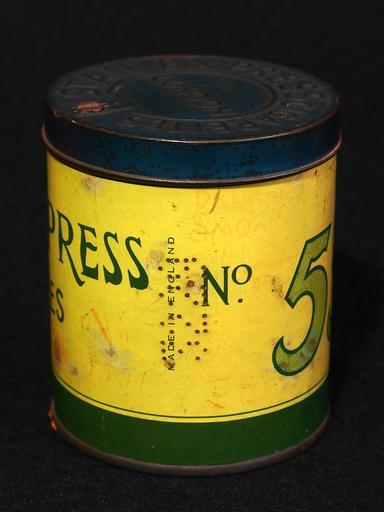 | Keywords: State Express cigarettes No 555 tin, photo12.JPG Very old product that is not produced and not sold any more Note that some tins may look the same but when looked for carefully there are some slight differences Photographed at a collector of Droste memorabilia and old tin cans For more info see http //www tincollectors nl/ tincollectors nl or email info tincollectors nl own 2014-02-08 15 04 56 Alf van Beem CC-Zero Trademarked Cigarette tins State Express 555 cigarettes | ||||
