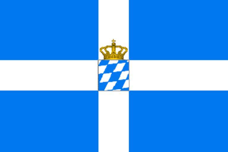 | Keywords: State Flag of the Kingdom of Greece (1833-1862).png  State_Flag_of_Greece_ 1833-1858 svg State Flag of the Kingdom of Greece under Otto I 1833-1862 The arms of the Bavarian Wittelsbach dynasty are superimposed on the plain cross civil flag The shade of blue is lighter than the modern flag reflecting contemporary usage Κρατική σημαία του Βασιλείου της Ελλάδος την  ερίοδο του βασιλιά Όθωνα 1833-1862 Ο θυρεός της δυναστείας Βίτελσμ αχ είναι το οθετημένος  άνω α ό την α λή  ολιτική σημαία με τον σταυρό Η α όχρωση του μ λε είναι ανοιχτότερη α ό αυτή της σύγχρονης ελληνικής σημαίας Own 2007-10-02 Cplakidas Flags of the Kingdom of Greece Coats of arms from Bavaria Blue and white flags Flags with one crown with cross Greece Otto of Greece |